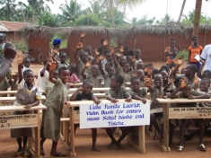 | Die kleine Dorfschule in Agbo Kope wurde von Eltern in Eigeninitiative gegründet. Doch für Schulbänke und Tische reichten die Mittel nicht. Die Kinder hatten keine Schulbänke und Tische. Sie mussten täglich von zu Hause selbst einen kleinen Schemel als Schreib- oder Sitzgelegenheit mitbringen.